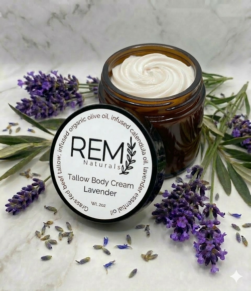Our tallow is made with organic grass-fed beef tallow, and infused with organic olive oil, calendula oil, and essential oils. This combination leaves your skin feeling hydrated and luxurious.
